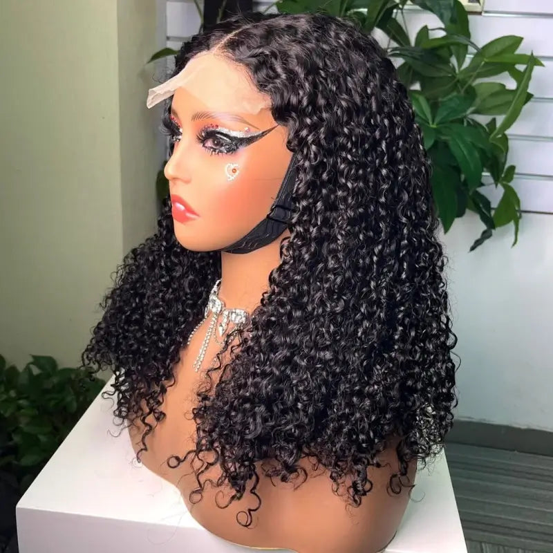 Peluca de cabello crudo de doble dibujo de 5x5 con rizos pixelados